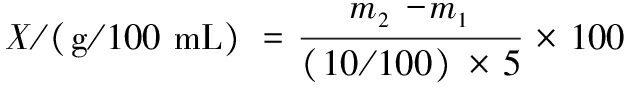 参考LIN等[10]的方法并略作修改。取5 mL于50 mL容量瓶中,加水稀释至刻度,充分摇匀。吸取上述稀释液5 mL置于已恒重的铝盒中,在105 ℃条件下干燥至恒重。样品中可溶性固形物的含量按照公式(1)计算: