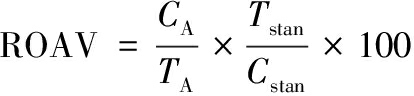 式中:CA,某种挥发性化合物的相对含量,%;TA,某种挥发性化合物的感觉阈值,μg/kg;Cstan,最大贡献挥发性成分的相对含量,%;Tstan,最大贡献挥发性成分的感觉阈值,μg/kg。