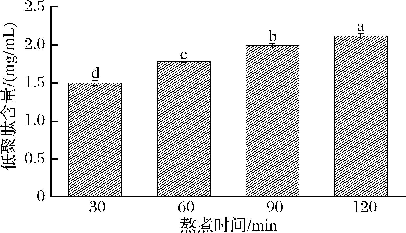 图3 不同熬煮时间对鹅汤低聚肽含量的影响
