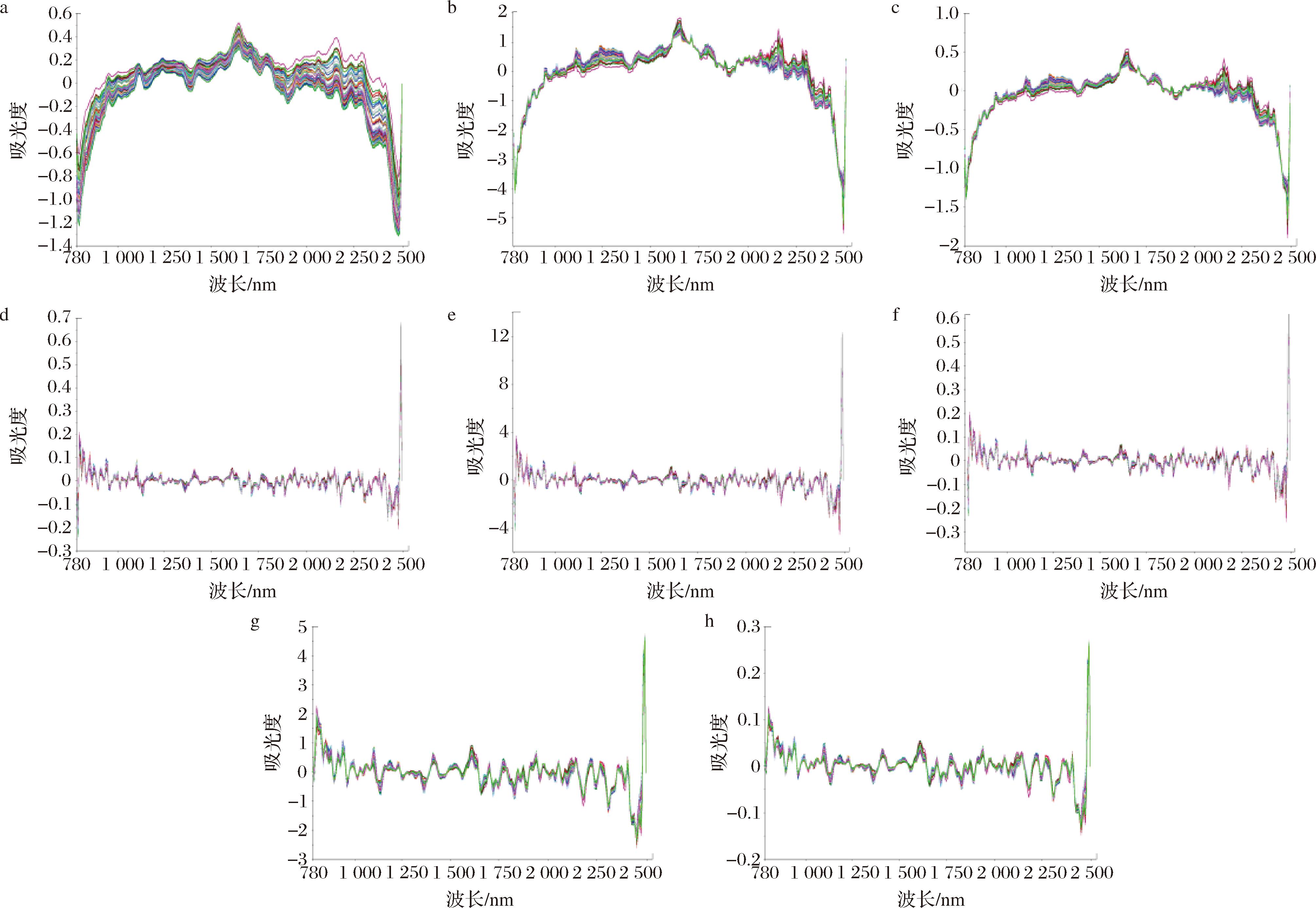 图2 不同预处理方式处理后的近红外光谱图(n=70)
