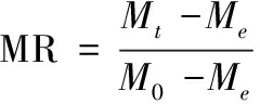 式中:Mt,表示t时刻物料的含水率;Me,表示物料的平衡含水率;M0,表示物料的初始含水率。