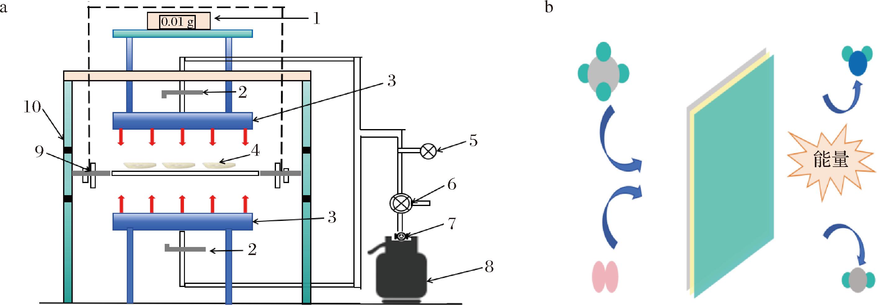 a-催化红外干燥机主要部件;b-催化红外工作原理图