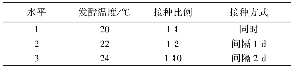 水平发酵温度/℃接种比例接种方式1201∶1同时2221∶2间隔1 d3241∶10间隔2 d