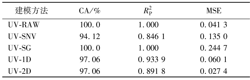表1 基于不同预处理UV全谱建立BPNN分类模型结果