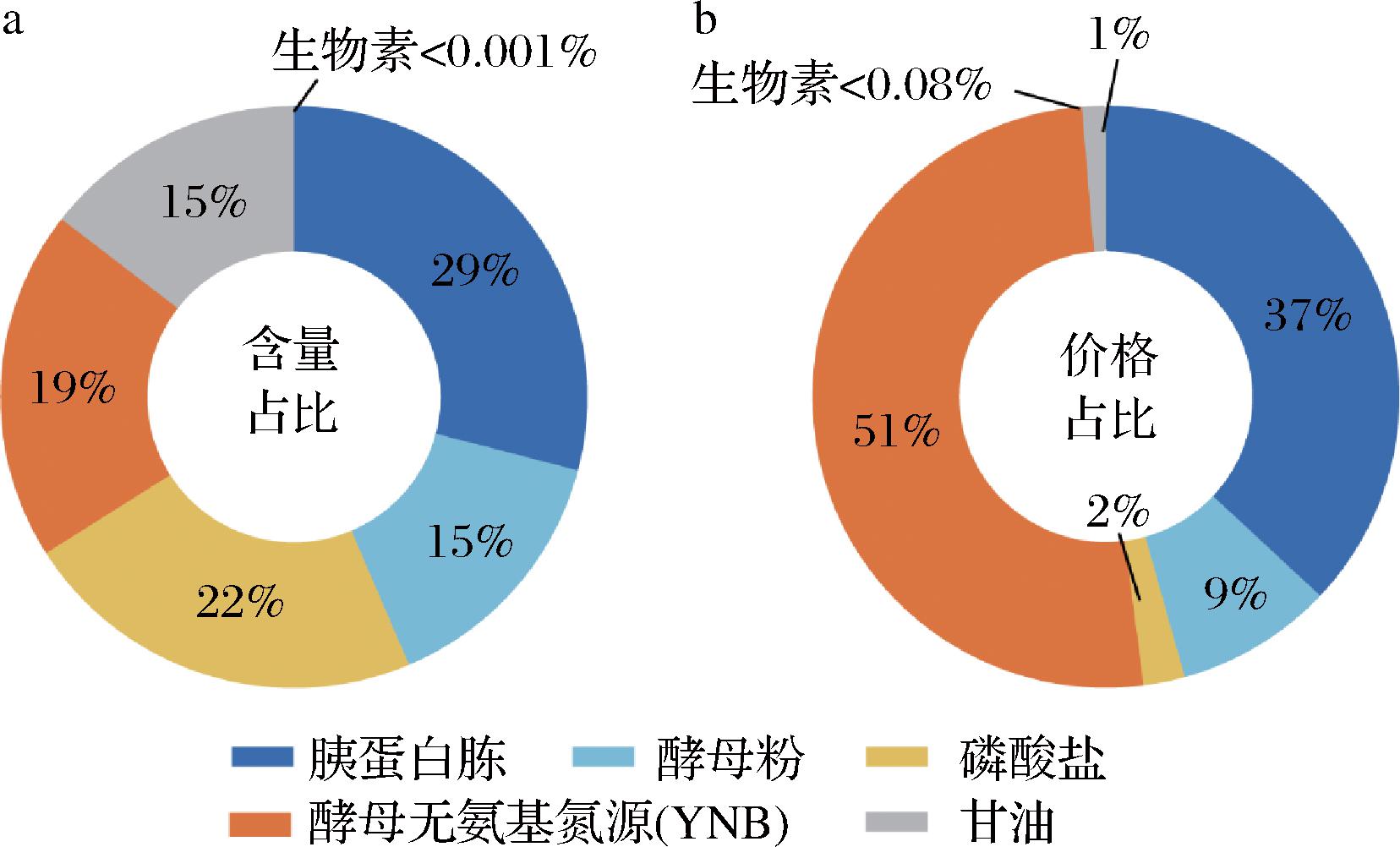 图4 BMGY培养基组分含量占比和价格占比