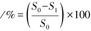 式中:AS,样品组吸光度值;AC,背景组吸光度值;AB,空白组吸光度值。