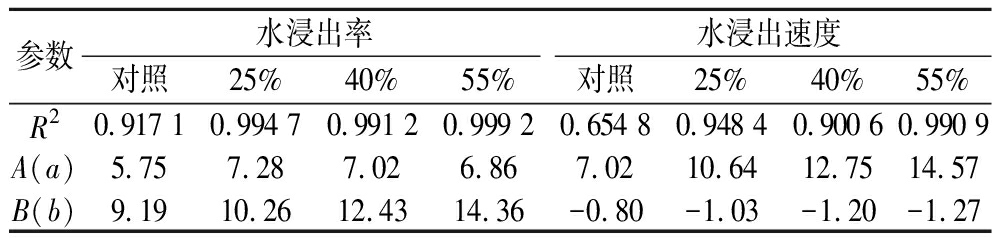 表3 沸水冲泡水浸出率和水浸出速度与冲泡时间的拟合方程参数