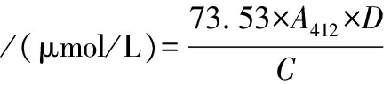 式中:A412,上清液在412 nm处的吸光值;D,稀释倍数;C,蛋白质量浓度,mg/mL;73.53=106/1.36×104,1.36×104是TNBA的摩尔消光系数。