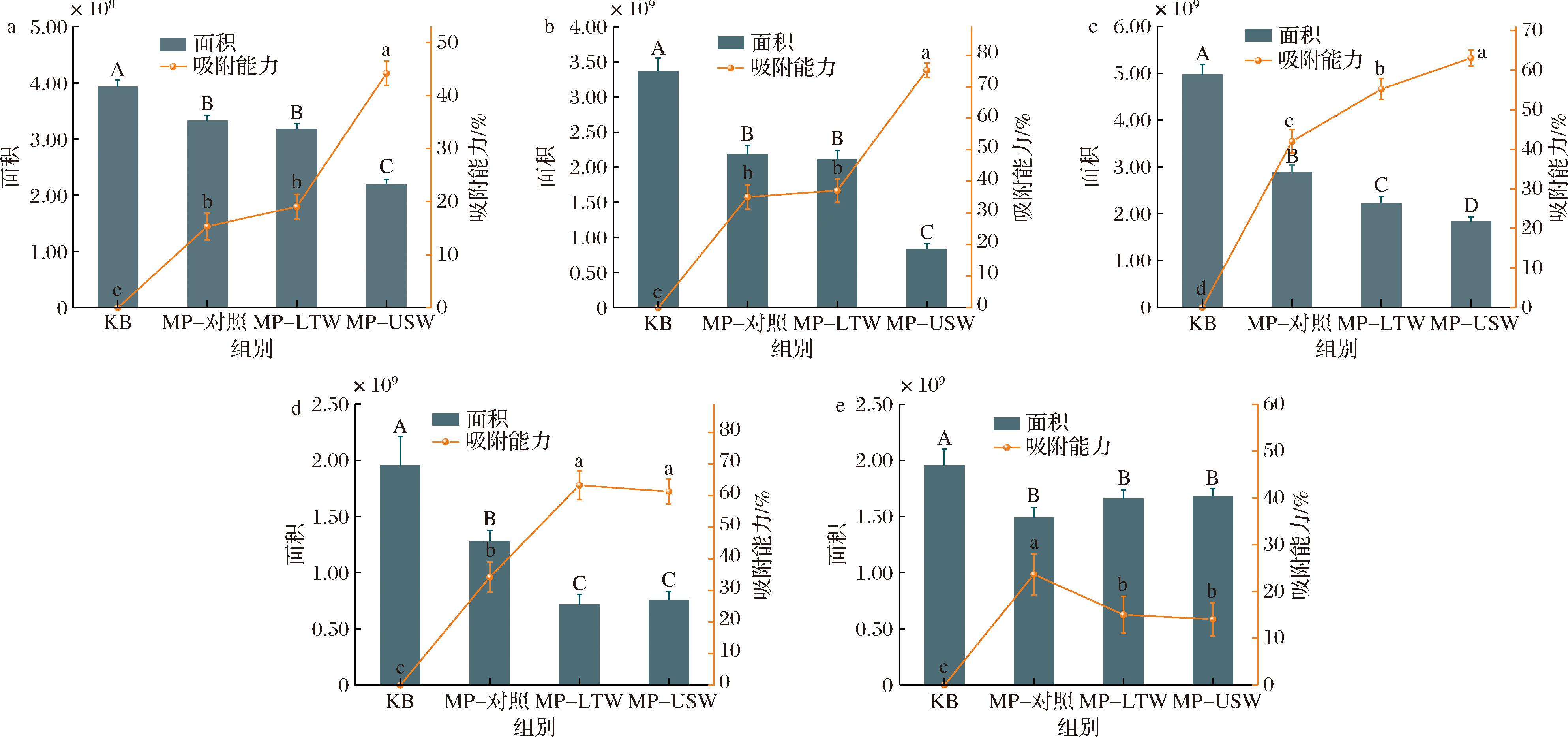 图7 不同肌原纤维蛋白对5种风味物质的吸附能力