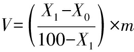 式中:V,加水量,mL;X0,原始水分,%;X1,所要达到的水分,%;m,样品质量,g。计算结果保留小数点后1位。