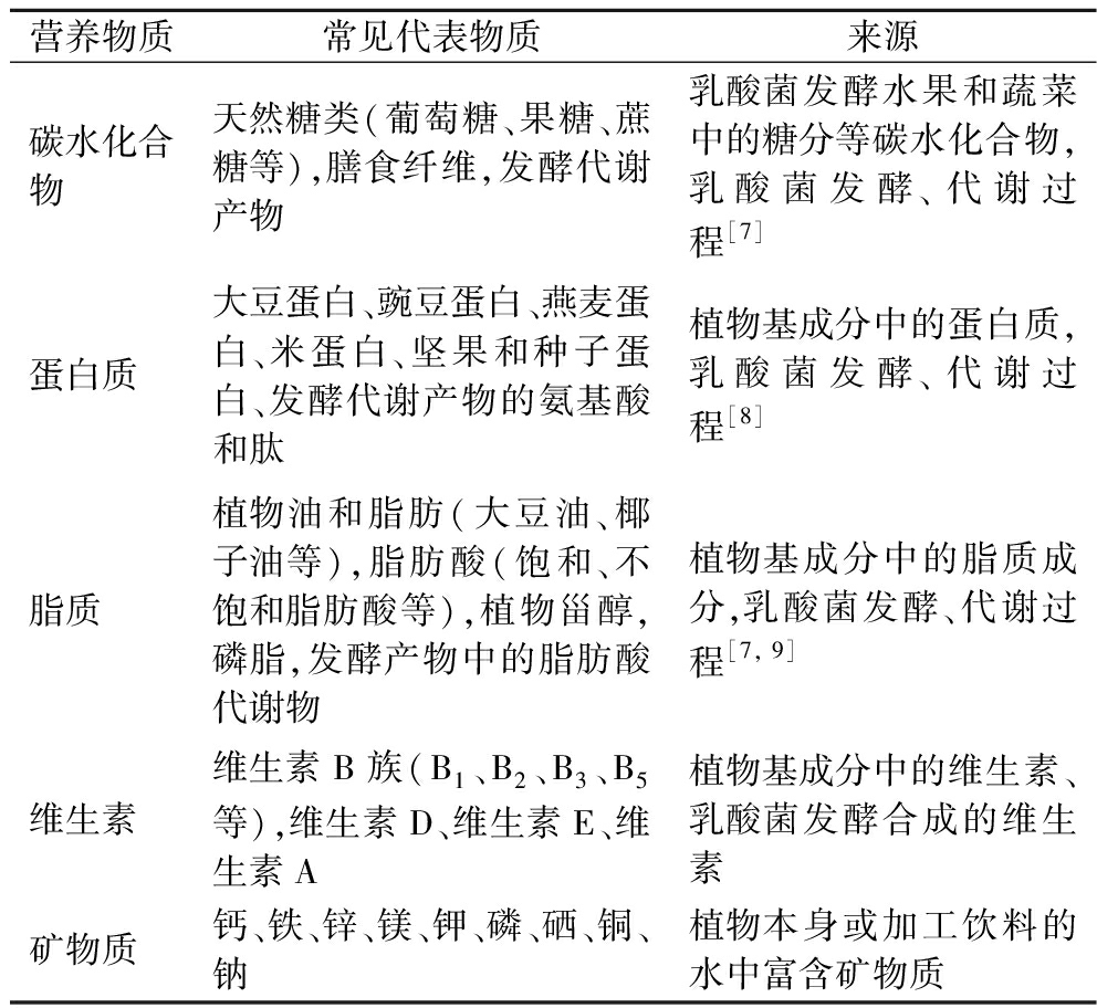 植物基饮料中主要营养物质包含碳水化合物、蛋白质、脂质、维生素、矿物质5类(表2)。