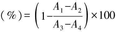 式中:A1,含样品、淀粉和α-淀粉酶的吸光值;A2,含样品、淀粉不含α-淀粉酶的吸光值;A3,含缓冲液不含样品的吸光值;A4,仅缓冲液、淀粉不含α-淀粉酶和样品的吸光值。