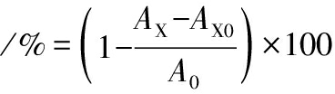 式中:A0,空白对照的吸光值;AX,加样品的吸光值;AX0,消化液+无水乙醇(不含ABTS)组吸光值。