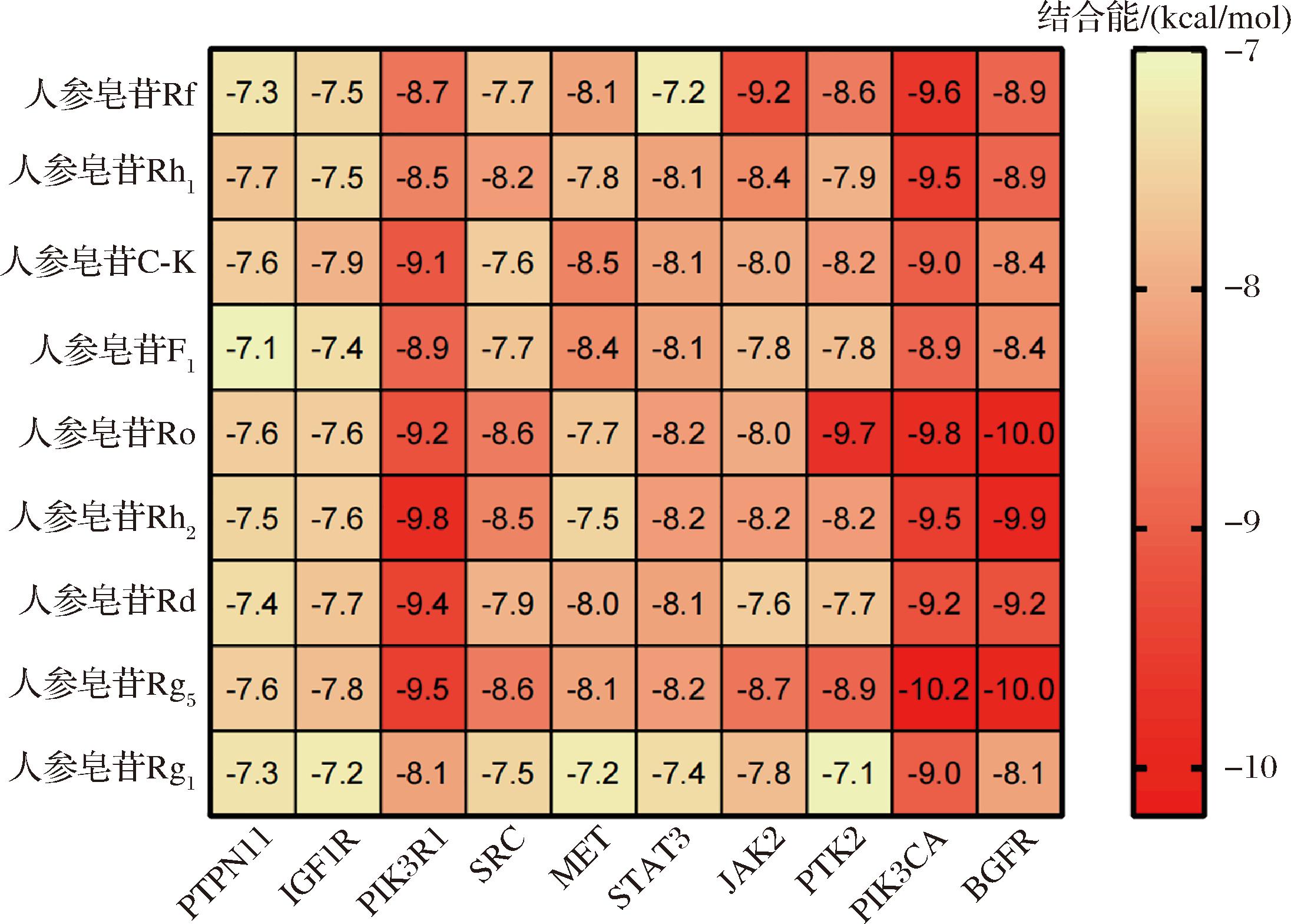 图4 分子对接结合能热图