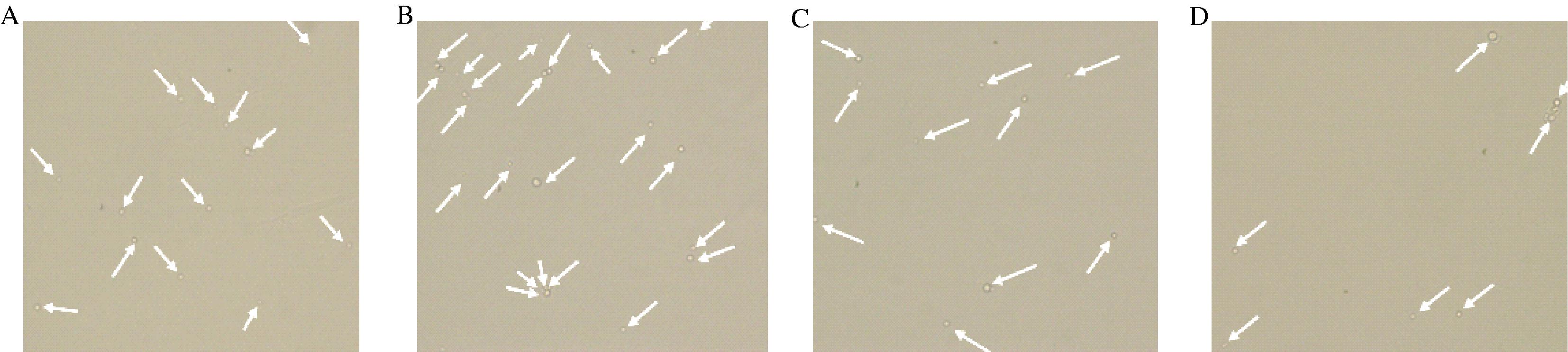 以上研究发现,液体摇瓶培养的菌球所制备原生质体的数量极少,且大多附着在菌丝上(图1-D),使用过滤的方式难以将菌丝体和原生质体进行有效地分离,残留的大量菌丝会干扰转化效率。赵君[11]通过优化黑曲霉液体培养时间、改进培养基配方,减少了菌球形成,使原生质体悬液浓度从1×104 个/mL提升至4×105 个/mL。