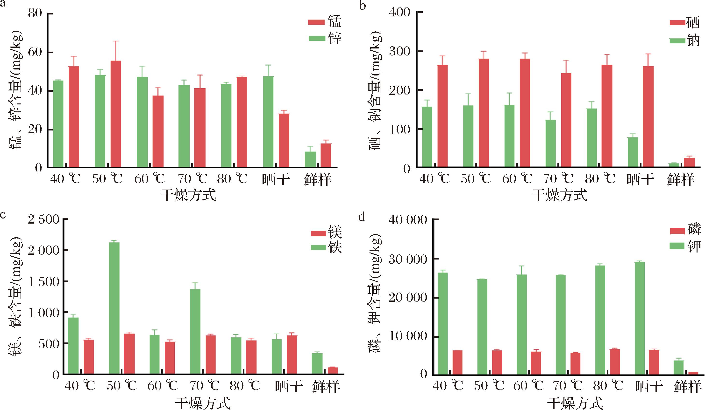 Fig.7 Effects of different drying methods on the contents of mineral elements