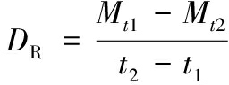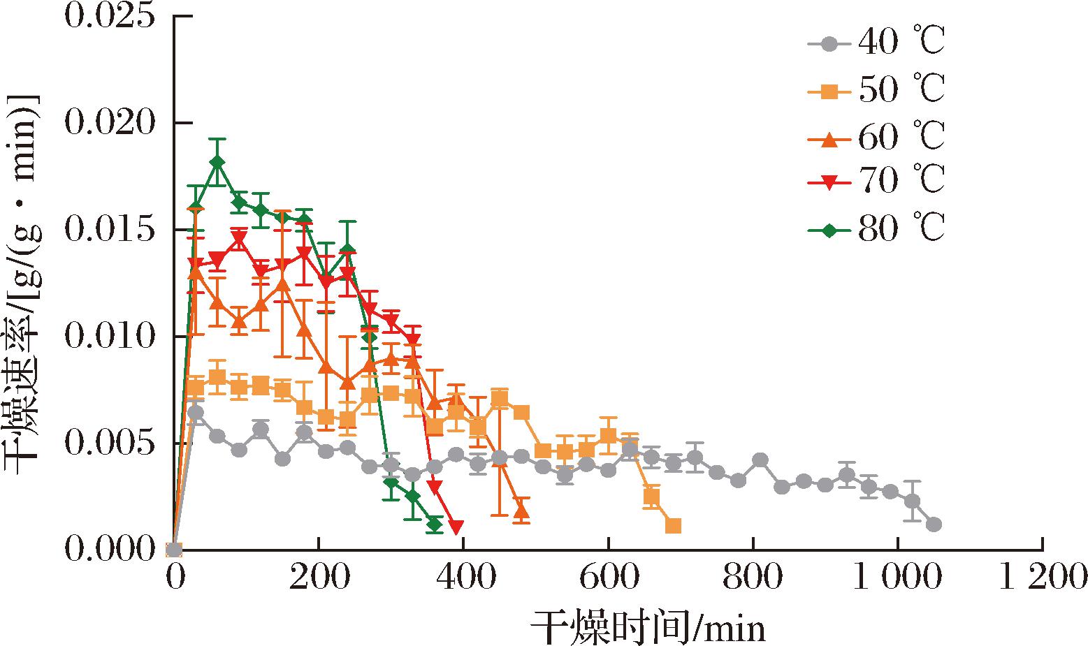 式中:DR为干燥速率,g/(g·min);Mt1,t1时刻的干基含水率,g/g;Mt2,t2时刻的干基含水率,g/g。