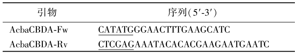 引物序列(5′-3′)AcbaCBDA-FwCATATGGGAACTTTGAAGCATCAcbaCBDA-RvCTCGAGAAATACACACGAAGAATGAATC