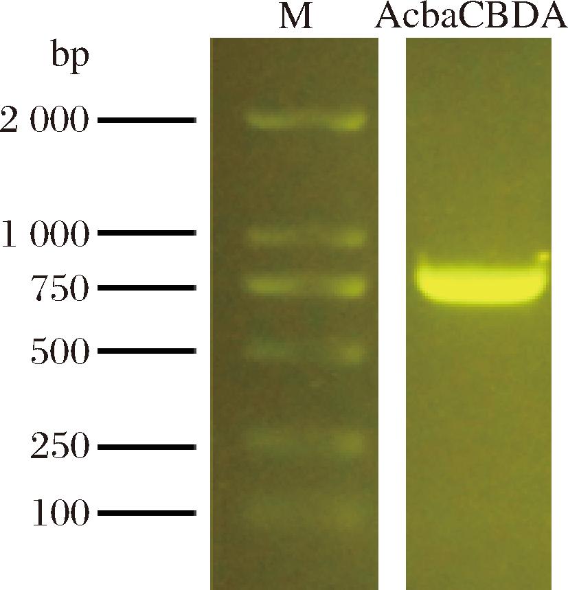 Fig.2 PCR amplification results of recombinant AcbaCBDA