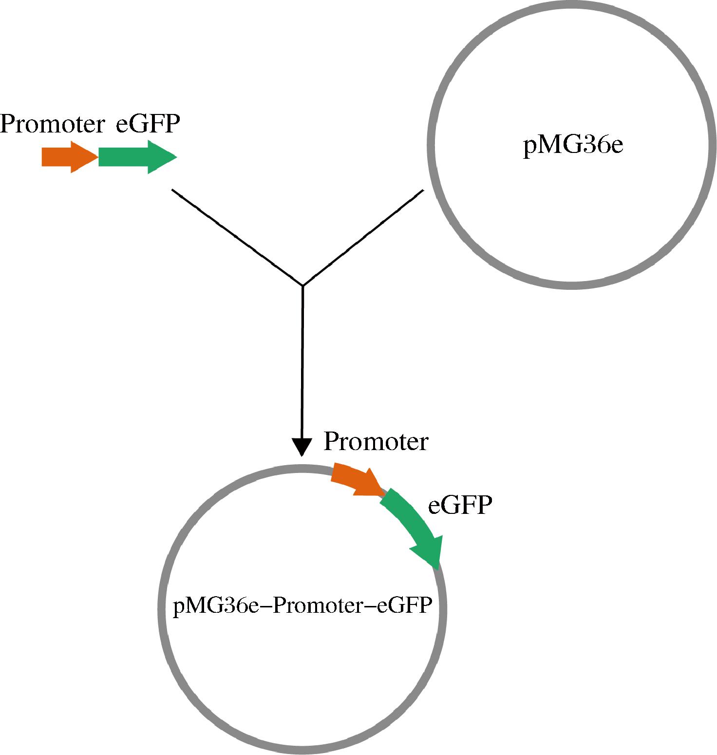Fig.1 Schematic diagram of the construction of the pMG36e-Promoter-eGFP plasmid