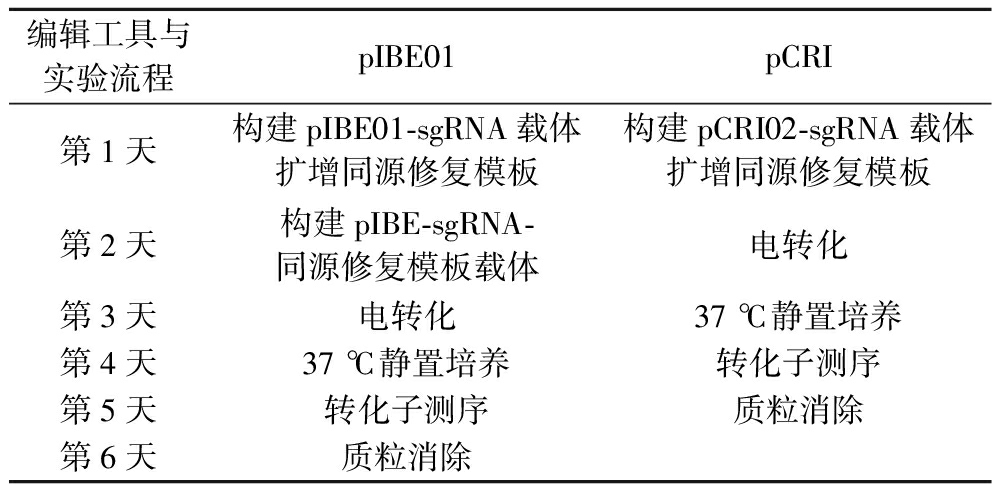 表4 质粒pIBE01与pCRI完成基因编辑的主要流程