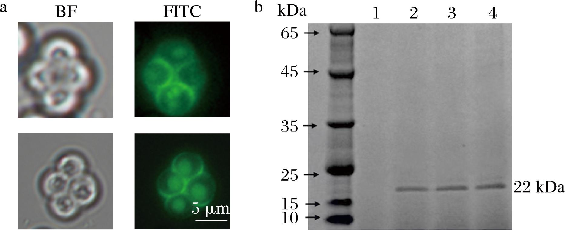 a-荧光定位;b-SDS-PAGE