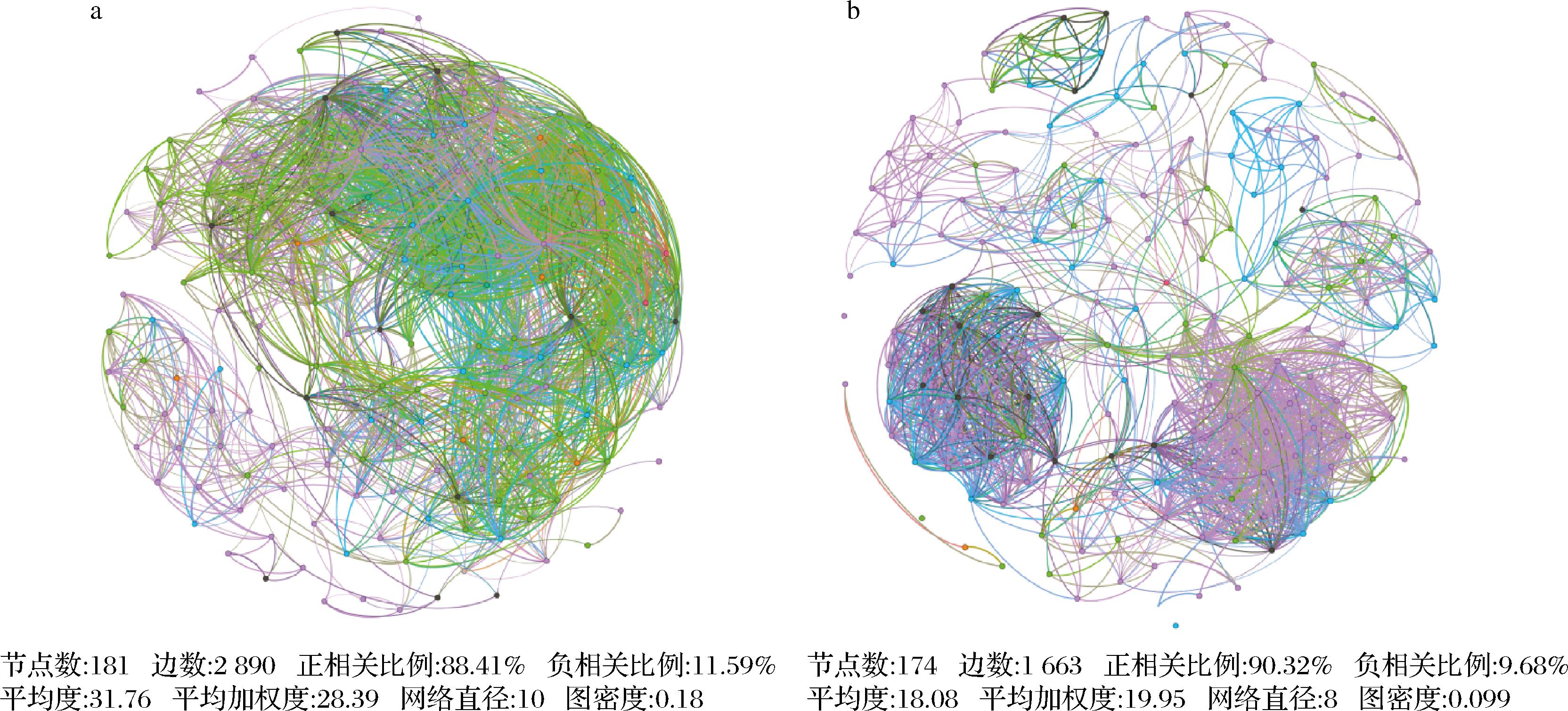Fig.4 Analysis of co-occurrence network of Daqu bacteria at medium-high- and high-temperature Daqu