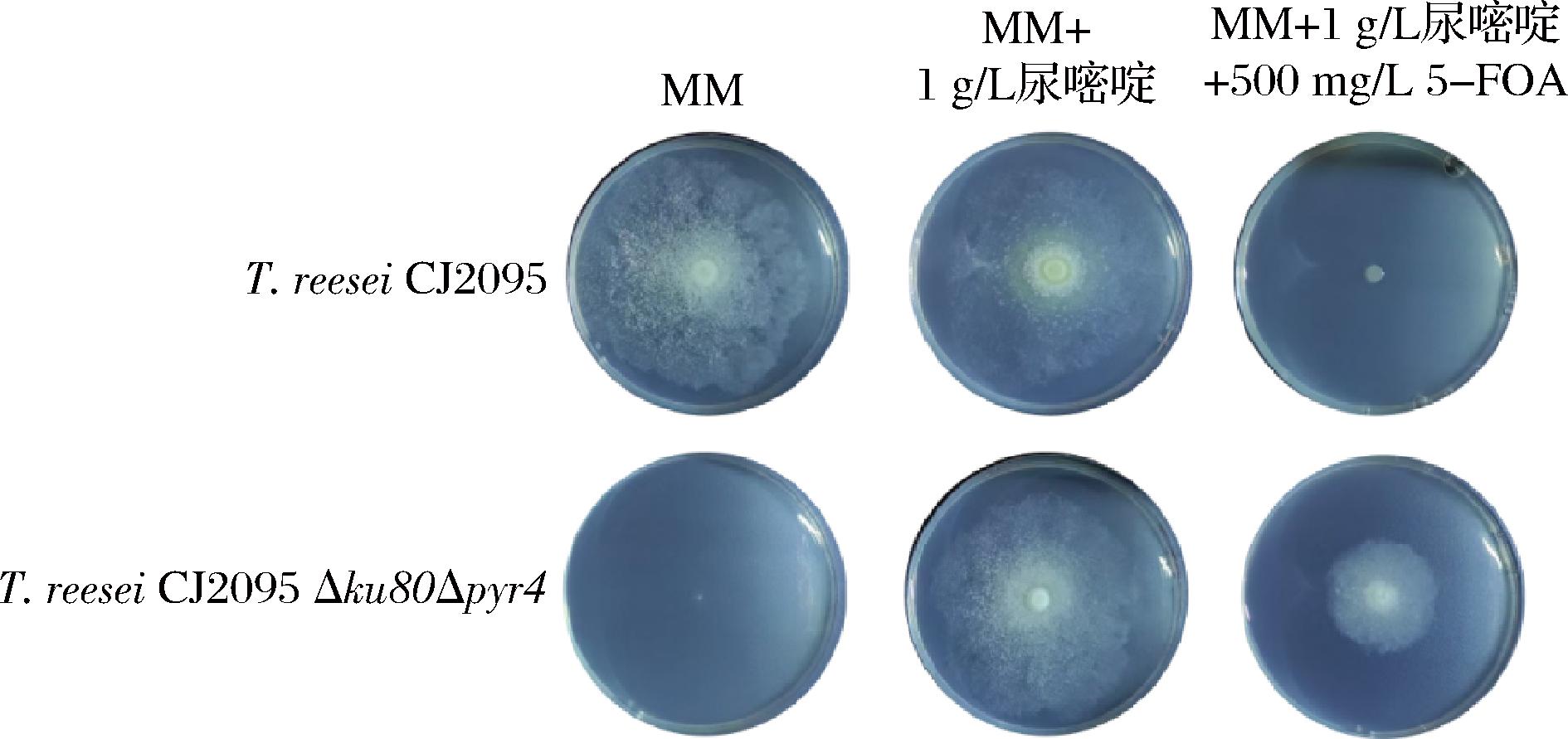 图4 重组菌株T. reesei CJ2095 Δku80Δpyr4的表型验证