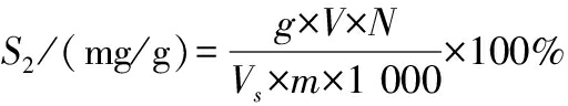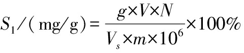 式中:S2,还原糖含量,mg/g;g,从标准曲线查得的葡萄糖质量,mg;V,样品提取液总体积,mL;N,样品提取液稀释倍数;Vs,测定时间所取样品提取液体积,mL;m,样品质量,g。