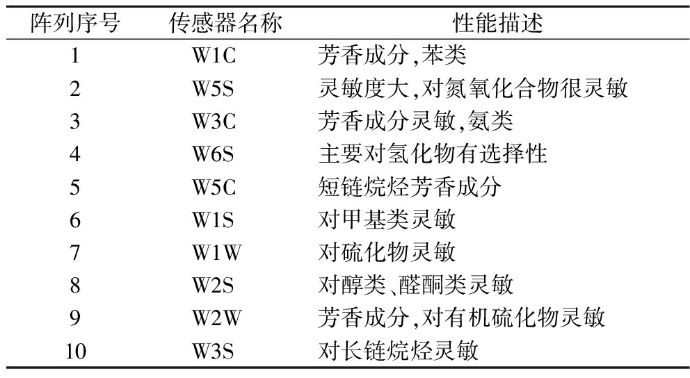 表1 电子鼻各传感器的响应特性