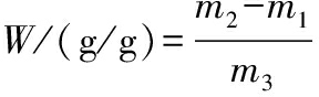 式中:W,桑葚渣粉的持水性/持油性,g/g;m1,样品和离心管的质量,g;m2,样品吸水后和离心管的质量,g;m3,桑葚渣粉的质量,g。