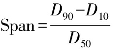 式中:Span,样品离散度;D10、D50和D90分别为粒度体积分布10%、50%、90%所对应的直径。