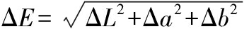 式中:ΔE,色差;ΔL,明度差;Δa,红绿轴色度差;Δb,黄蓝轴色度差。