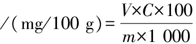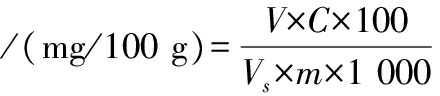 式中:V,样品提取液总体积,mL;C,标准曲线得到的质量浓度,μg/mL;m,样品质量,g。