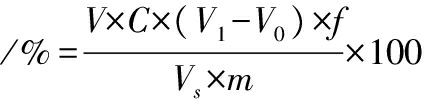 式中:V,样品提取液总体积,mL;C,NaOH滴定液浓度,mol/L;V1,滴定滤液消耗的NaOH的体积,mL;V0,滴定蒸馏水消耗的NaOH的体积,mL;f,折算系数,g/mmol;Vs,滴定时所取滤液体积,mL;m,样品质量,g。