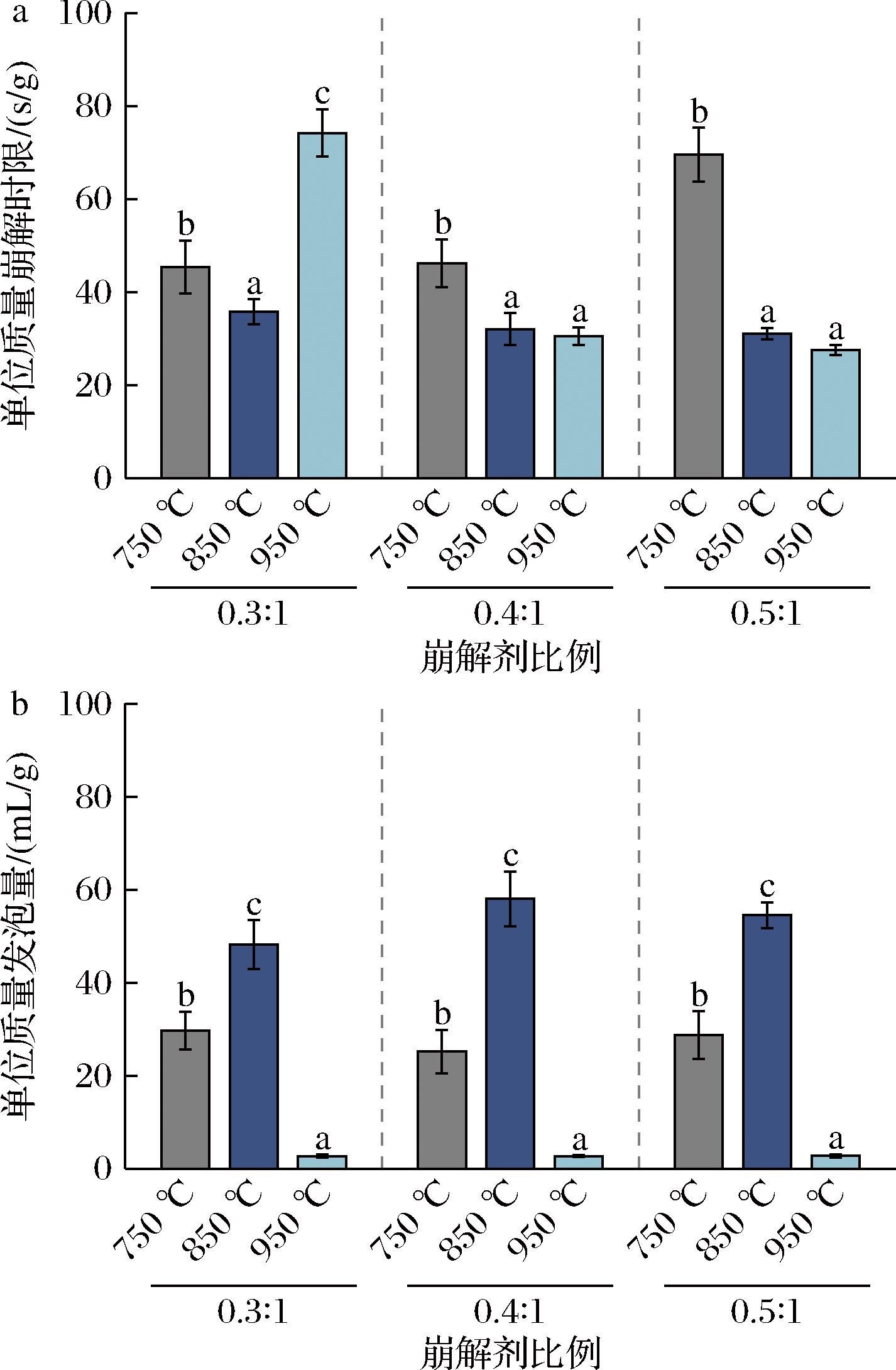 a-单位质量崩解时限;b-单位质量发泡量