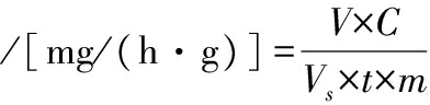 式中:V,样品提取液总体积,mL;C,标准曲线得到的葡萄糖质量,μg;Vs,测定时所用样品提取液体积,mL;t,酶促反应时间,h;m,样品质量,g。