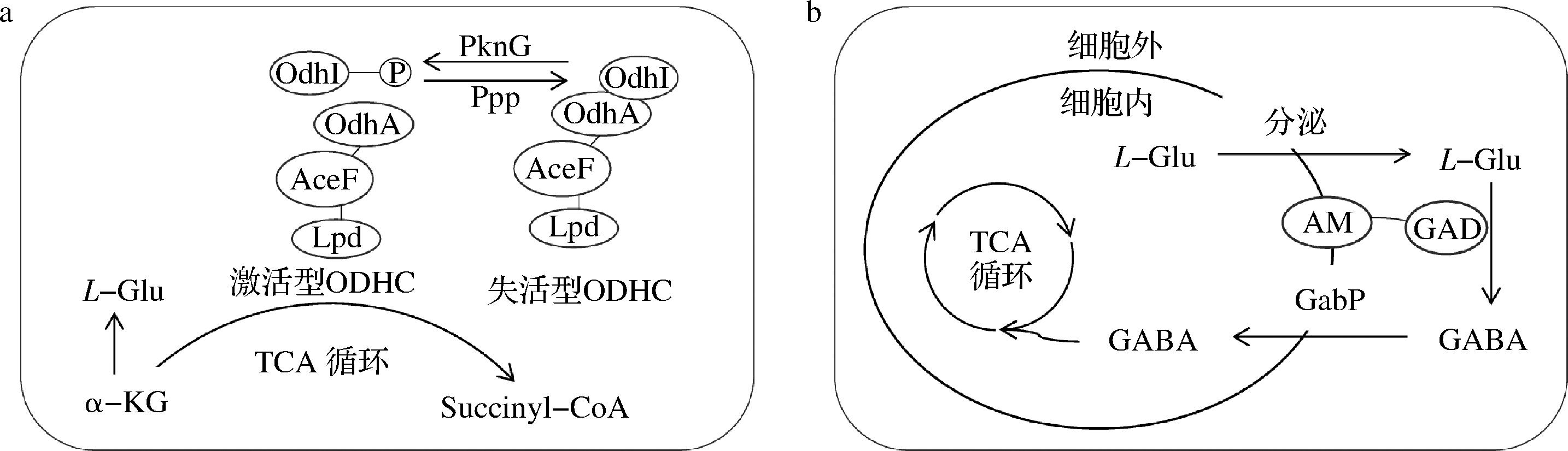 a-PknG对ODHC的调控作用;b-GabP对GABA的转运