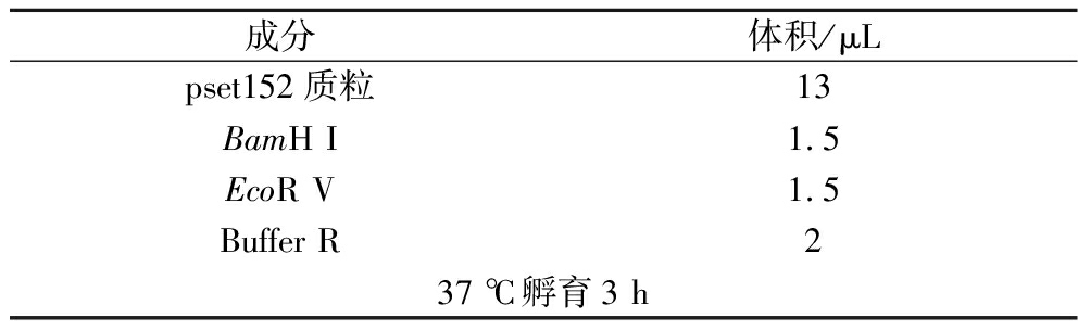 成分体积/μLpset152质粒13BamH I1.5EcoR V1.5Buffer R237 ℃孵育3 h