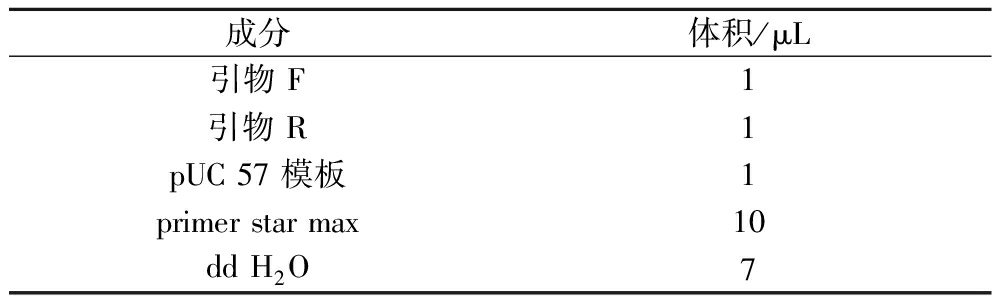 成分体积/μL引物 F1引物 R1pUC 57 模板1primer star max10dd H2O7