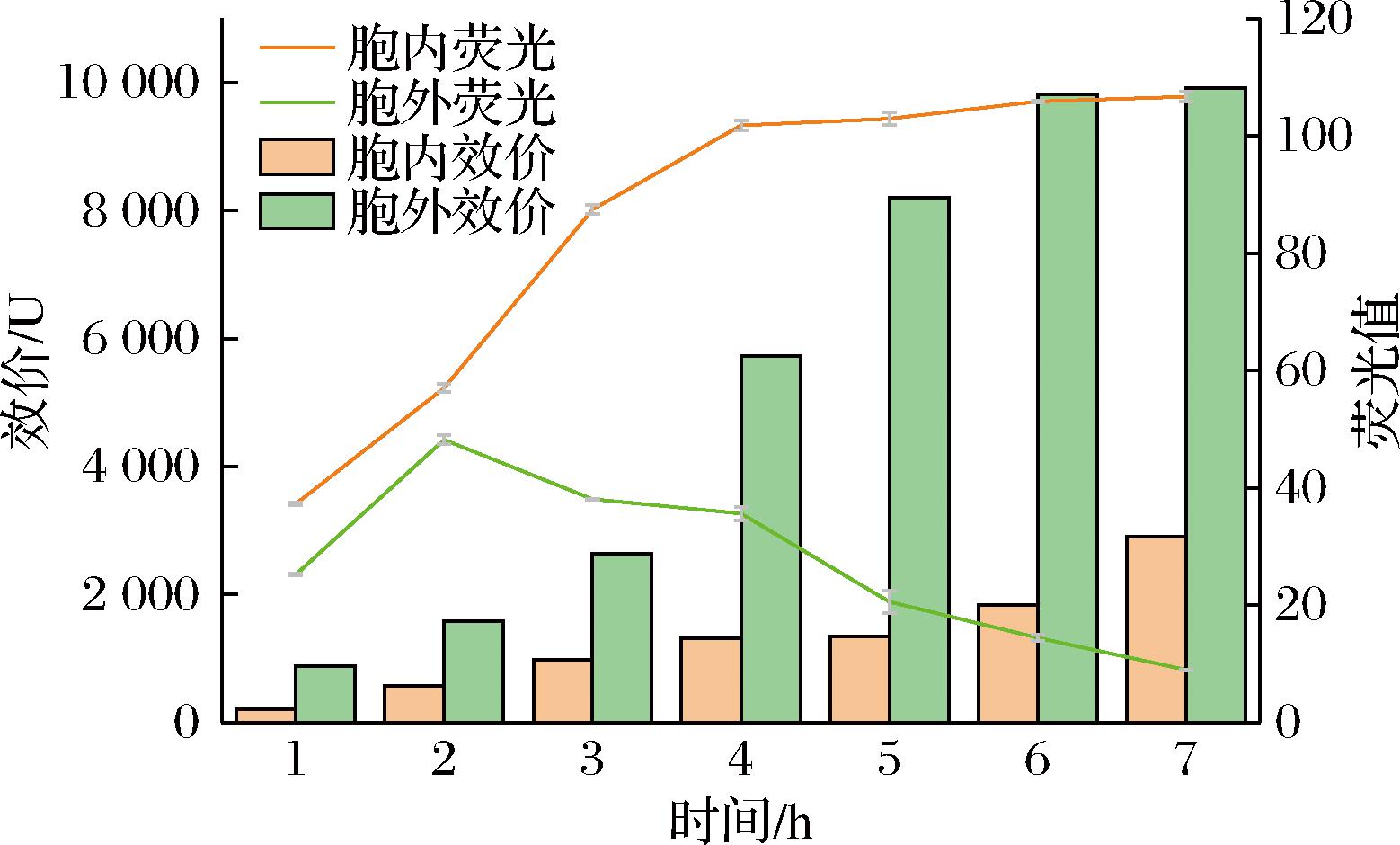 2.2.4 SF/pPR-N1-space-eGFP菌株摇瓶发酵过程中荧光强度及效价分析