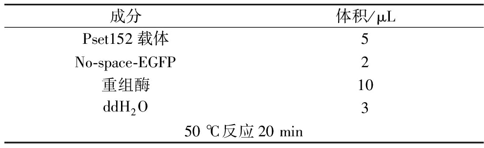 成分体积/μLPset152载体5No-space-EGFP2重组酶10ddH2O350 ℃反应20 min