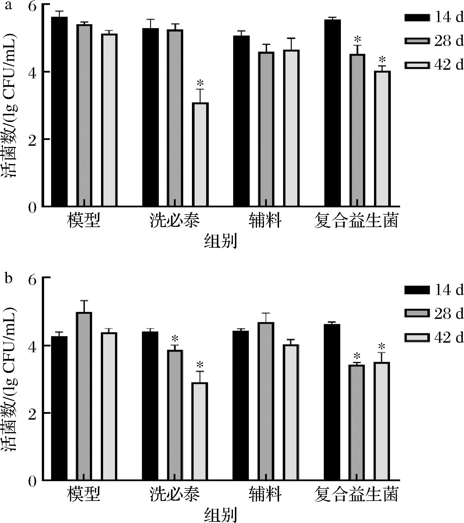 注:*为与14 d相比差异显著(P<0.05)。