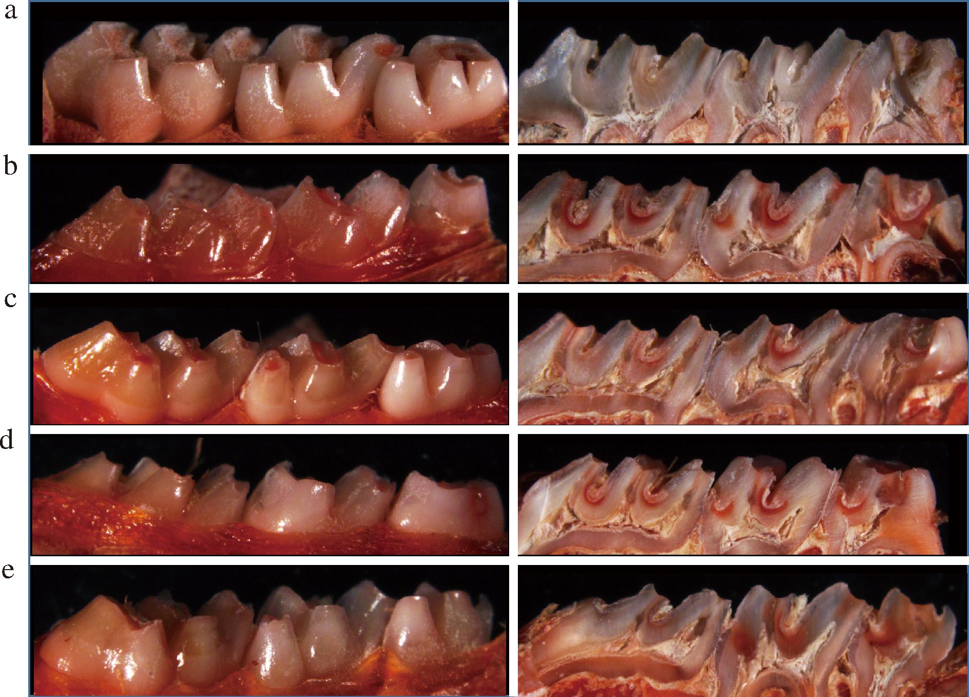 Fig.5 Stained rat molars and their cross-sections
