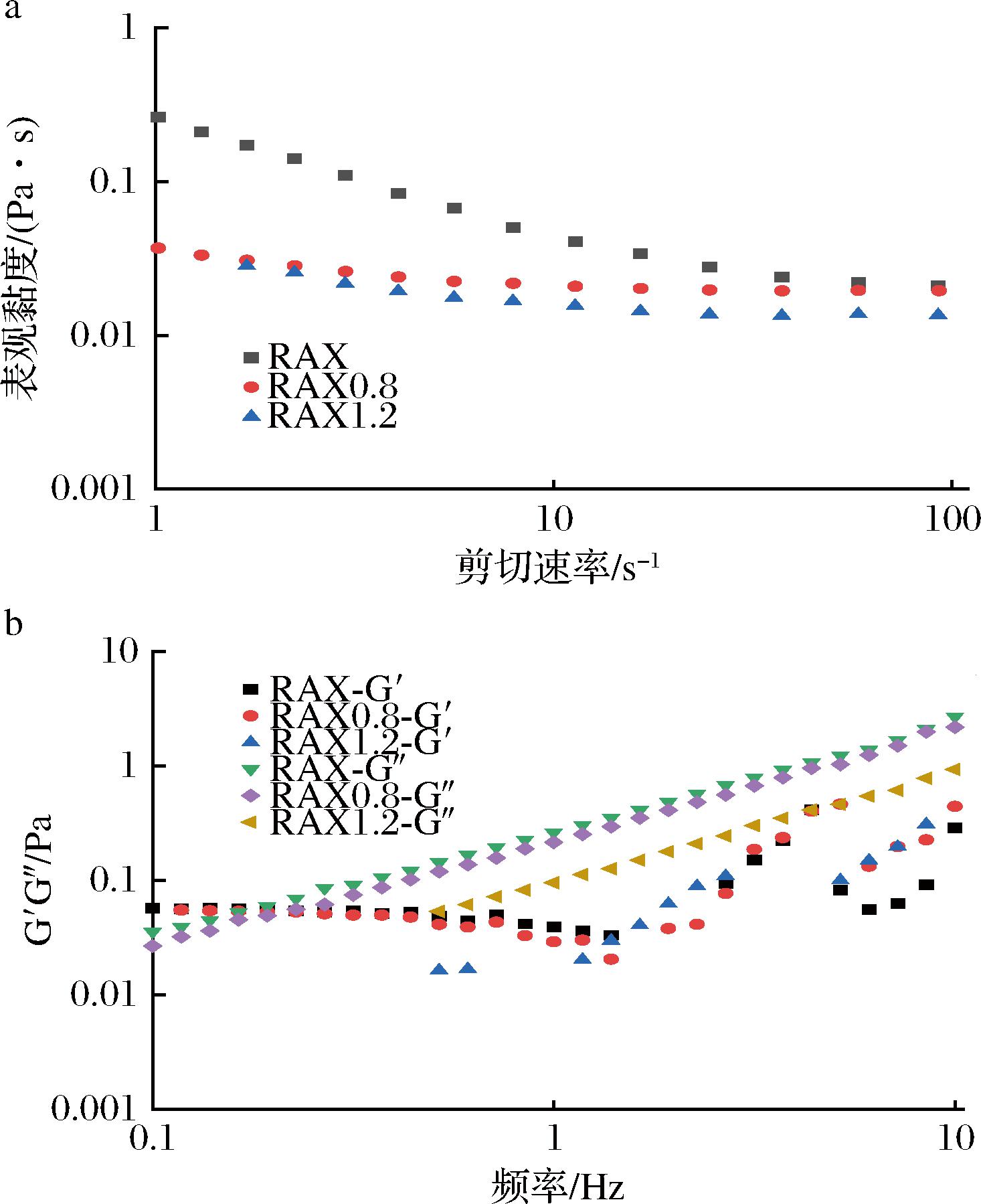 a-表观黏度;b-动态频率扫描