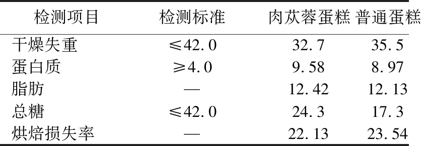 检测项目检测标准肉苁蓉蛋糕普通蛋糕干燥失重≤42.032.735.5蛋白质≥4.09.588.97脂肪—12.4212.13总糖≤42.024.317.3烘焙损失率—22.1323.54