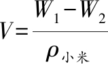 式中:ρ小米,小米的密度,通常为0.7~0.8 g/cm3;W1,称量容器和小米的总质量,g;W2,称量容器、小米和蛋糕的总质量,g。