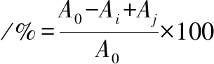参考汤焘[15]的研究方法,并根据实验条件进行了适当调整。取离心管3支,分别标记为A0、Ai和Aj。向A0管加入1 mL DPPH溶液和1 mL无水乙醇,向Ai管中加入1 mL DPPH溶液和1 mL肉苁蓉蛋糕提取液,向Aj中加入1 mL肉苁蓉蛋糕提取液和1 mL无水乙醇。重复3次,利用紫外分光光度计测量OD517值,计算如公式(6)所示: