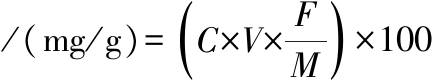 式中:C为仪器读取质量浓度,μg/mL;V为样品提取液体积,mL;F为稀释因子;M为样品称取总质量,mg。