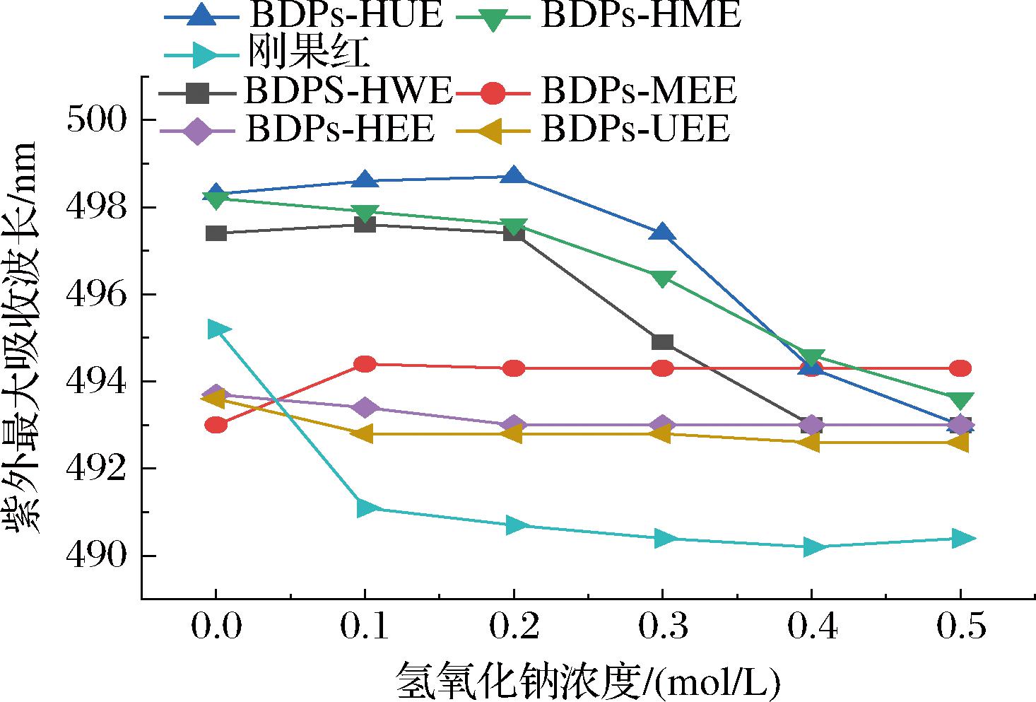 图6 不同NaOH浓度下BDPs与刚果红络合物的最大吸收波长λmax
